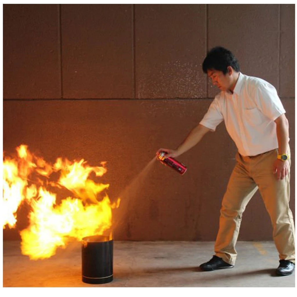 Pemadam Api Mudah Alih, Pantas, Selamat & Efektif! Direka khas untuk padamkan api kecil & sederhana, Hanya goncang dan sembur, tak perlu buka pin.