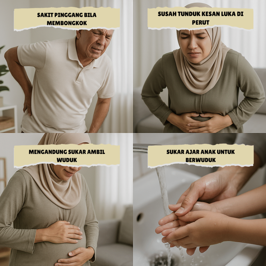 😣 “Nak, pinggang dengan lutut mak sakit… susah betul nak ambil wuduk.”