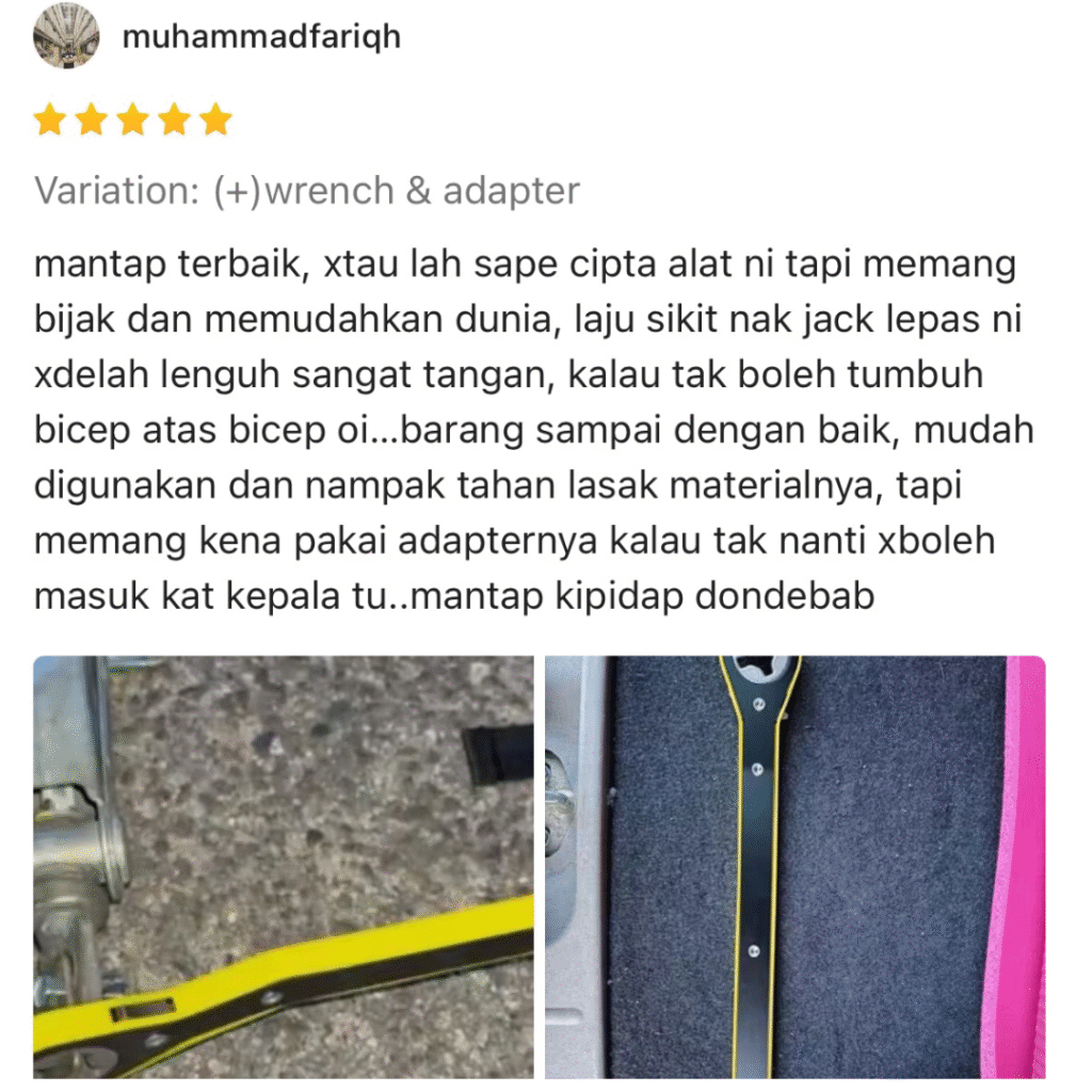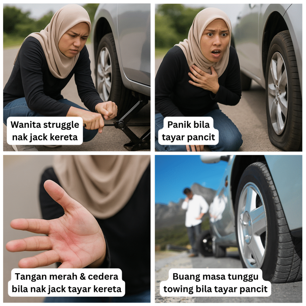 | ❌ Proses jack ambil masa lama | ✅ Naik tayar lebih cepat & stabil |